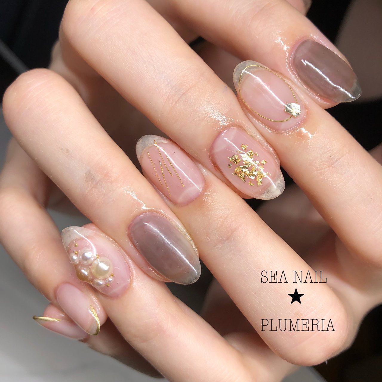 Gray Nuance Nail ニュアンスネイル グレーネイル クリアネイル ミラーネイル シェルネイル ゴールドネイル ブラウンネイル 秋ネイル Minne 日本最大級のハンドメイド 手作り通販サイト